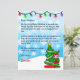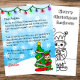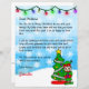 Fügen Sie dem personalisierten Brief des Weihnachtsmannes den Namen Ihres Kindes hinzu. Niedliche Cartoon-Grafik eines kleinen Elfs stehend von einem Weihnachtsbaum und einer Bonus-Farbseite auf der Rückseite.