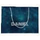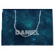 Sterne funkeln in dieser weltraumorientierten Geschenktasche gegen einen dunklen Himmel.