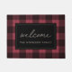Fügen Sie dem Eingang eine Touch im Bauernstil hinzu, mit diesem rustikalen Büffel karierte gemusterte Türmchen in klassischen Kranberry rot und schwarz. "Willkommen" erscheint in der Mitte in lässigen handgeschriebenen Schriftzeichen; personalisieren Sie sich mit Ihrem Familiennamen unten.