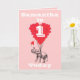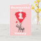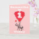 Personalisieren Sie diese lustige niedliche Vintage Elefantentierbilder und romantische Herzballons in der roten Liebe und hübschen gürtelrosa Hintergrund mit dem Namen Ihrer Tochter oder Mädchen, und ändern Sie die 1. Geburtstagsnummer, falls erforderlich, um eine einzigartige Erstgeburtskarte zu erstellen.