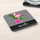 Stripter harter Kunststoff-Untersetzer mit Flamingo-Bild. Personalisieren Sie dieses Produkt, indem Sie ihm Ihren Namen hinzufügen