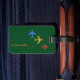 Ein grafisches Design eines Flugzeug auf grün.. um mit Namen und Telefonnummer zu personalisieren.