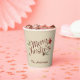 Diese festlichen Papiertassen eignen sich perfekt für Weihnachts-Partys und Feiertage. Sie zeigen die Botschaft "Frohe Weihnachten" im Mond vor einem hellbräunlichen Hintergrund mit Kiefernbällen und Poinsettia Akzenten. Verwenden Sie das Vorlagenfeld, um Ihren Namen oder Ihre Nachricht im unten stehenden passenden Text hinzuzufügen.