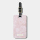 Individuell gestaltete monogramm Gepäckmarke mit personalisiertem Monogramm/Namen auf modernem rosa Marmormuster vorne, bearbeitbare Kontaktinformationen auf der Rückseite.