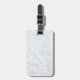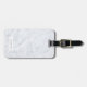 Maßgeschneiderte monogramm Gepäckmarke mit personalisiertem Monogramm/Name auf modernem weißem Marmormuster vorne, bearbeitbare Kontaktinformationen auf der Rückseite.