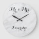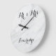 Personalisierter Herr und Frau White Gray Marble Große Wanduhr