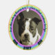 Feiern Sie das Leben Ihr geliebter Hundes mit dieser personalisierten Weihnachtsdekoration. Fügen Sie einfach den Namen, das Foto, das Geburtsjahr und das Jahr Ihr Hundes des Überschreitens hinzu. "Gerade ist diese Seite des Himmels ein Platz, der genannt wird Regenbogenbrücke."