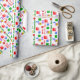 Dieses lebendige und stilvolle Kunstwerk zeichnet sich durch ein fröhliches, farbenfrohes geometrisches Design von Quadraten und Kreisen aus, zusammen mit vier anpassbaren Textfeldern für einen Gruß wie "Happy Birthday!", einen Namen, ein Alter, Initialen oder andere persönliche Touchs. Die Farbpalette umfasst die Farbtöne goldgelb, rosa, rot, grün, blau, rosa und lila, was es zu einem lustigen und vielseitigen Geburtstagsverpackungspapier für Groß und Klein macht. © Wafa Y. Dahdal - Alle Rechte vorbehalten. WD Art