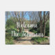 Dieses hübsche Hotel, das den Anfang des Frühlings darstellt, zeigt ein schönes Bild eines Spaziergangs, der sich um einen Gartenweg zieht. Mit "Welcome" in einem hübschen weißen Schriftart, personalisieren Sie den Namen Ihrer Familie darunter. Bestelle noch heute! Original Artwork: © 2016, Rhonda Jones
