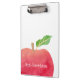 Personalisierter Lehrerrotes Watercolor-Apple-Schulklemmbrett. Personifizieren Sie mit dem Namen des Lehrers auf Front und Rückseite dieses Spaßklemmbrettes. Ein roter Aquarellartapfel in der Ecke mit grünem Stamm. Entwurf auf beiden Seiten. Großes Geschenk für Lehrer.
