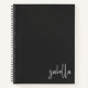 Dieses schicke, schwarze, moderne Notizbuch enthält Ihren Namen in einer weißen handgeschriebenen Schrift-Kalligraphie auf schwarzem Hintergrund. Die Typografie ist stilvoll in der unteren rechten Ecke platziert. Ideal für Büro, Studentenwohnheim, zurück zur Schule oder für Geschäftsleute. Ein eleganter minimalistischer Stil in Schwarz und Weiß.