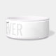 Schwarz-Weiß-Hundeschüssel mit grauem "BEST DOG EVER" und dem Hundenamen in einem schicken und eleganten Kalligraphie-Script-Schriftart-Textüberlagern. Geben Sie jeden personalisierten Text ein, den Sie für den Hintergrund und die oberste Textebene wünschen, um Ihre eigene personalisierte moderne und minimale und lustige Keramik Heimtierfutter oder Wasserschüssel zu erstellen. Sehen Sie sich unsere Sammlung von koordinierenden Schalen und erhalten Sie ein Set!
