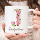 Diese hübsche personalisierte Kaffee-Tasse mit Blumenbriefen J und Ihrem Namen in Kalligraphie-Skript angepasst, oder erstellen Sie ein einzigartiges Geschenk für Ihre Lieben.