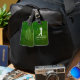 Personalisierter Monogramm Golfer aus grünem Leder Gepäckanhänger