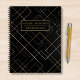 Dieses moderne Design besticht durch ein elegantes und stilvolles, gold lineares geometrisches Muster auf schwarzem Hintergrund. Personalisiert mit Ihrem Namen und zusätzlichen Texten, indem Sie den Text in den Textfeldern editieren, die in #notebooks #stationery #personalisiert #personalized stationery #Zuhause #office #work #school #gift #gift #gifts #geometric #personalized #personalized gifts #custom #customgifts #stockingstopers #masculine #feminine