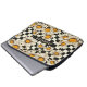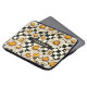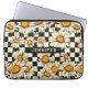 Retro Groovy Daisy Checkerboard Personalisierter Name Laptop Sleeve verfügt über ein groovy dunkles Muster auf einem schwarz-weißen Schachbrettmuster Hintergrund mit Ihrem benutzerdefinierten Text oder personalisierten Namen in der Mitte. Perfekt als Geschenk für Familie und Freunde zu Weihnachten, Geburtstag, Urlaub, Muttertag, Arbeitskollegen und mehr. Erstellt von ©Evco Studio www.zazzle.com/store/evcostudio