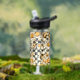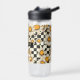 Retro Groovy Daisy Checkerboard Personalisiert Name Water Bottle bietet ein groovy düsteres Muster auf einem schwarz-weißen Schachbrettmuster Hintergrund mit Ihrem benutzerdefinierten Text oder personalisierten Namen in der Mitte. Perfekt als Geschenk für Familie und Freunde zu Weihnachten, Geburtstag, Urlaub, Muttertag, Arbeitskollegen und mehr. Erstellt von ©Evco Studio www.zazzle.com/store/evcostudio