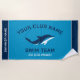 Das personalisierte Badetuch-Design für Schwimmer im Schwimmbecken beinhaltet einen eigenen Text für den Vor- und Nachnamen des Schwimmers, den Namen des Schwimmteams, das Maskottchen oder andere Texte. Fügen Sie Ihr Teamlogo zum Platzhalter-Bild des Delfins hinzu. Das Farbschema von Ozeanblau, Marineblau und Weiß kann so geändert werden, dass es mit den Teamfarben abgestimmt wird. Bitte kontaktieren Sie uns unter kathleen@plushpaper.com mit Designfragen.