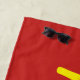 Diese einfache Badetuch-Ausrüstungsbeschreibung ein personalisierter Name in einem gelben Skript ähnlichen Schriftart auf einem roten Hintergrund.