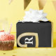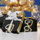 Fügen Sie Ihrem Geschenk eine besondere und personalisierte Touch hinzu. Eine elegante, schwarze und goldene Geschenkpackung mit Namenspersonalisierung und zwei Herzen für Initialen. Ideal für Hochzeit oder Jubiläum.