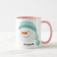 Personalisierter Name lächelnd Gesicht Schneemann glücklich niedliche Tasse blau und rosa Weihnachtsgeschenk.