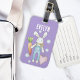 Dieses Produktdesign zeigt die Illustrationen eines gestopften Hasen-, Karotten- und rosa Herzens. Mit seiner farbenfrohen Grafik macht es ein niedliches und einzigartiges Gepäckanhänger für Mädchen, zusammen mit personalisiertem Text und Hintergrundfarbe.