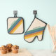 Erstellen Sie Ihren eigenen Retro-personalisiert-Ofen-Mitt und Topfhalter. Die abstrakten Vintagen Streifen Design und individuelle Name in einem klassischen Stil Typografie.