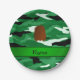 Niedliche Geschenkideen. Erstellen Sie Ihr eigenes Personalisierte mit einem Namen, Monogramm, Initialen oder Sprichwort Cartoon niedliche Baby bigfoot Muster, grüne Tarnung Muster Hintergrund und grünen Streifen.