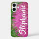 Personalisierter Name Rosa und Grüne Blüte iPhone 16 Hülle
