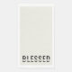 Kundenspezifische Serviette. "Gesegneter" Skriptname. Beigefarbener Hintergrund. Schwarze Typografie.