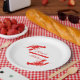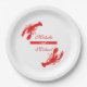 Personifizieren Sie diesen PapierTeller, der zwei kennzeichnet Silhouetten der Panzerkrebse (Hummer) in einem hellen roten und weißen Entwurf. Vervollkommnen Sie für Ihre Panzerkrebsblutgeschwür-Verlobung, Hochzeits- oder Jahrestagsereignis!