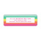 Stilvolle und moderne Rückadressen-Etikettenaufkleber sind mit einem einfachen Regenbogen-Sherbet-Farbgebälk in saftigen Farbtönen von Himmelblau, Minzgrün, Gelb, Orange und Fuchsia-Hot-Rosa ausgestattet. Passen Sie das an! Um Änderungen am Layout vorzunehmen, geben Sie Ihren Text ein und wählen Sie dann "anpassen", um Dinge wie Schriftart Größe und Stil zu bearbeiten. Für weitere passende Geschenke, Schreibwaren und Zuhause-Artikel in diesem Design, klicken Sie auf den Sammlungslink, um die Erholung dieser "Monogram Rainbow Sherbet Color Block" Kollektion hier auf Zazzle zu sehen. ・ Copyright ©2020 Splendid Creative™ Exklusiv für Zazzle, Alle Rechte vorbehalten. Sämtliche Splendid Creative™ Designarbeiten sind durch das US-Urheberrecht geschützt und dürfen nicht auf eine im Wesentlichen ähnliche Weise reproduziert werden. ・ Urheberrechtsverletzer werden strafrechtlich verfolgt ・