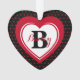 Folk Art Design mit hübschen roten Herzen auf schwarzem Hintergrund, mit einem großen rot-weißen Dualfarbenherz-Design in der Mitte, zeigt das Monogramm und den Namen Ihres oder Ihrer Lieben. Auch gut für ein Haustier. Auf der Rückseite finden Sie ein kleines Herz "Tattoo", mit den Worten "Weihnachten 20xx". Personalisieren Sie Ihre Monografie, Ihren Namen und Ihr Jahr. Hintergrund- und Textfarben sind individuell anpassbar, um die Dekoration zu ergänzen.