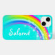 Hübsche Regenbogendesign iPhone Gehäuse. Personalisieren Sie mit Ihrem eigenen Namen, derzeit liest Salomé. (***Bitte beachten Sie, dass einige Namen aufgrund der Art des Schriftartes nicht immer passen. Exklusiv von Sarah Trett entworfen und illustriert.