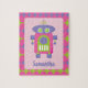 Ein niedlicher und farbenfroher Retrororoboter in Rosa, lila und grün - perfekt für die Person, die alles Retro und Robotik Liebe. Der Roboter ist auf rosa, lila und grün mit einem Sterndesign. Persönlich mit einem Namen für ein einzigartiges und lustiges Geschenk.