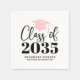 Diese einfache und moderne Serviette für Abschlussfeiern zeigt ein sauberes, zentriertes Layout mit einer rosafarbenen Abschlussmütze und Quaste oben im Design für einen weichen, mädchenhaften Look. Der rosafarbene Ton verleiht eine süße, stilvolle Note und kann bei Bedarf auf hellere oder tiefere rosa Schattierungen angepasst werden. Direkt unter der Mütze erscheint "Jahrgang" in eleganter handgeschriebener Schrift, gefolgt vom Abschlussjahr, das auf "Jahrgang 2026" oder jedes beliebige Jahr angepasst werden kann. Unter dem Jahr werden der Name des Absolventen und der Name der Schule in zeitlosen Serifenschriften für einen polierten, ausgewogenen Abschluss angezeigt.