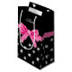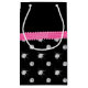 Chic-, girly, trendy und modernerpolka-Punktmusterhintergrund der schwarzen Diamanten (nicht wirkliche Diamanten) mit einem rosa Band des Diamantbogens (nicht wirkliche Diamanten) personalisiert mit Ihren Namegeschenken oder Monogrammgeschenke oder Ihre Initialen. Bling Geschenkideen für Frauen. Ideal für Hochzeiten, Geburtstage und viel mehr Aufmachung einer eleganten und traditionellen extravaganten Beschriftung