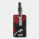 Das schwarze, elektrische Gepäckanhänger mit Textvorlage auf einer Seite. Dunkelrote Grafik auf beiden Seiten. Das partielle Bild einer schwarzen Gitarre ist vorne mit fett weißem Text auf der Rückseite. Identifizieren Sie Ihr Gepäck einfach mit einem einzigartigen Anhänger.