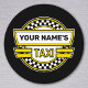 Unser personalisiertes Taxi-Logo ist ein Vergnügen für alle, die ihre Zeit mit dem Fahren für ihre Familie und Freunde verbringen. Mit dem klassischen gelben und schwarzen Schachbrett-Muster haben wir einen Platz für Sie hinzugefügt, um es mit einem Namen zu versehen.