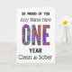 Ein Jahr Hand gezeichnet Saubere und nüchtern Karte für nüchternen Geburtstag, Jubiläum. Wählen Sie einen Namen und eine Hintergrundfarbe oder ein Design aus.