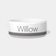 Ein personalisiertes Haustiergericht in Grautönen und Weiß. Der Name Ihres Haustieres ist Set in einem modernen grauen Schriftart über einer Grenze von koordinierenden Grautönen.