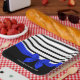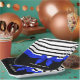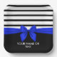 Personalisierter Schwarz-weißer Streifen Christmas Blue Bow .