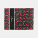 Chili-Paprikaschoten-Geschenkideen. Rotes Chili-Paprikaschotenmuster mit schwarzem Hintergrund des Glitters (NICHT WIRKLICHER GLITZER), mit hübsche schwarze Diamanten (nicht wirkliche Diamanten) mit Herzen und Punkte stripe personalisiertes mit Ihren Namensgeschenken oder Monogrammgeschenke oder Ihre Initialen.