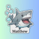 Lassen Sie sich mit unserem niedlichen personalisierten Swimming Hai-Aufkleber verwöhnen, der einen lieblichen Hai mit Blasen spielerisch umgibt. Dieses charmante Design ist perfekt für Ozeanfreunde, Liebhaber des Meereslebens und alle, die eine Touch von Unterwasserwhimsy genießen.
