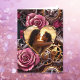 Personalisierte Steampunk-Themenkarte Valentinstag. Fügen Sie Ihr Foto in den personalisierenden Bereich ein. Rosa Herzen, Falten Gänge.