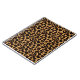 Ein Leoparddruckmuster in den Karamell-, Braunen und Schwarzenfarben. Ein Bronze Ähnliches Band läuft zwischen, wo das Schwarze und das Muster sich treffen.