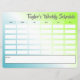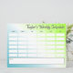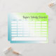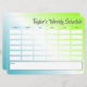 Der personalisierte Stundenplan / Schülerplan enthält eine Vorlage, die in 6 Zeilen und 6 Spalten unterteilt ist (zuerst TIME, dann Tage der Woche MON bis FRI), und eine große rechteckige Form für weitere Notizen unten. Ein einfacher, aber moderner Gradientenhintergrund in Blau, Weiß und Grün macht ihn perfekt für Schüler aller Altersgruppen.