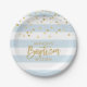 Personalisierter Taufe JUNGE blaue Goldstreifen Pappteller
