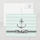 Postkarte mit grauem Aquarellanker auf einem minzgrünen und weißen Streifen Hintergrund. Sie können das Design auch mit benutzerdefiniertem Text unter dem Anker personalisieren.