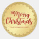 Eleganter goldener Umschlag Aufkleber mit verziertem goldfarbenem Rahmen und tiefgründigem Urlaubstext. Frohe Weihnachten ist in der Mitte mit Ihrem Namen unten geschrieben. Raffinierter und schicker Umschlag Aufkleber für Ihre Weihnachtskarten und Einladungen. Einfach anzupassen.